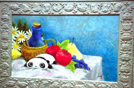 まず、末政ひかる先生のかかれた「題・静物(かと思ったら動物も)」が迎えてくれます。