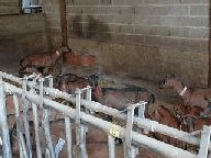 午後から、山羊農家のDe Loofさんのお宅を訪問しました。建物はコの字型になっていて、向かって左側がチーズ作りの建物、正面がお住まい、右側(レンガ色の屋根)が山羊小屋になっていました。 |