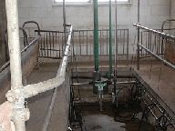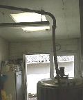 写真は、左から、山羊小屋の様子、搾乳機、搾乳室、(搾乳室の中央を上に上がる)パイプの先が隣の部屋のミルクのタンクへ、ミルクのタンク。