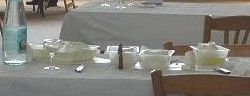 左から2枚目:テーブルの様子。私たちのテーブルには、日の丸のマークが。