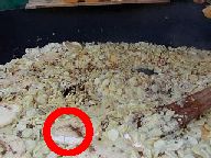 左)ツアー参加者の昼食の一番人気。これ、実は巨大な中華鍋(の中身)。右側に木べら(大きなしゃもじ)の柄が見えてます。中身はポテトとベーコン、玉ねぎに、丸く見えているの(○)はルブロッションを横に半分に切った物(直径い15cmくらい)。これがどどーんとたくさん入っています。基本的に味付けはこれだけ! 野趣にもあふれてるし、(手軽だし ^^;;)なかなか美味でした。