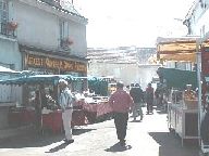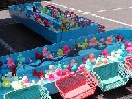 左から、狭い路地に賑やかな露店がいっぱい、チーズ屋さんもたくさん出ていました、UFOキャッチャーもあってびっくり、フランス版金魚すくい? ビニル製のアヒルをすくうゲーム