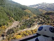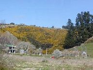黄色く見える低木は野生のエニシダです。ニュージーランドではあまりに増えすぎたため、雑草(木)扱いされているそうです。 |